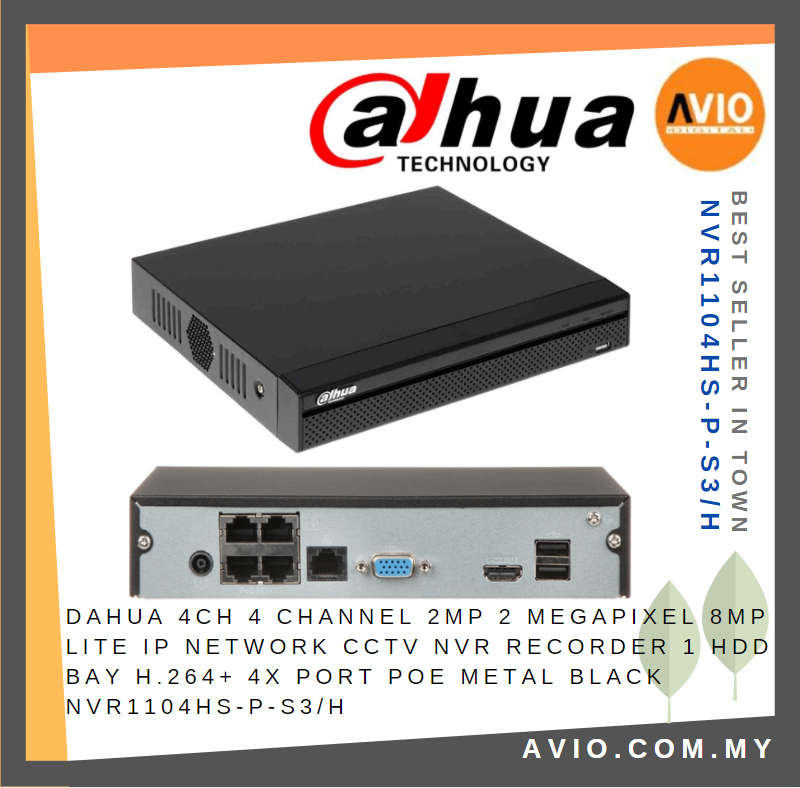 -NVR1104HS : 4 x PoE+ ports (Max 25.5W each port, 36W in total)