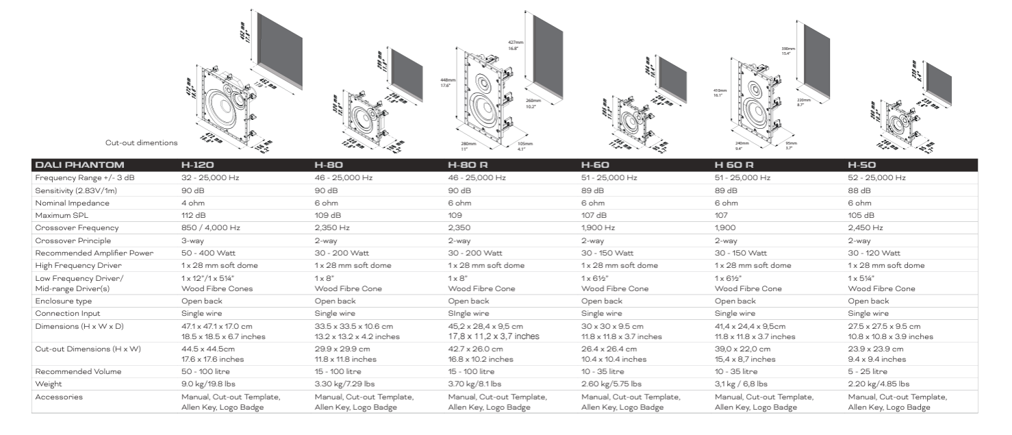Dali Phantom H-80 In Wall Speaker with Large Sound