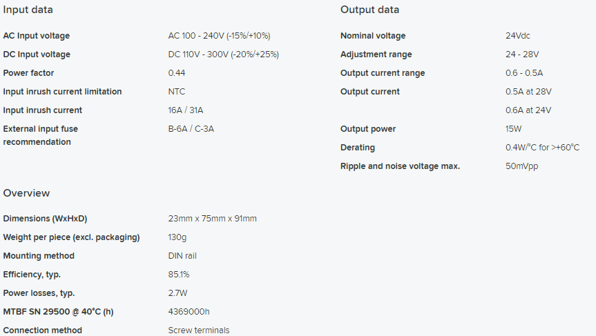 PULS ML15.241 DIN Rail Power Supplies INPUT : AC100~240V OUTPUT : DC24V/15W/0.63A