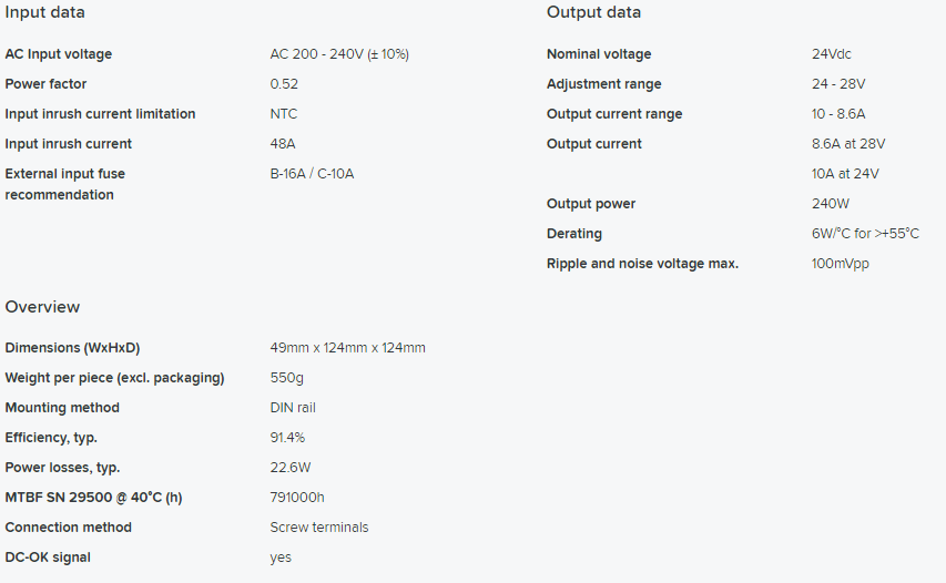 PULS PIC240.241C DIN RAIL POWER SUPPLIES INPUT: AC200~240V OUTPUT: DC24V/240W/10A