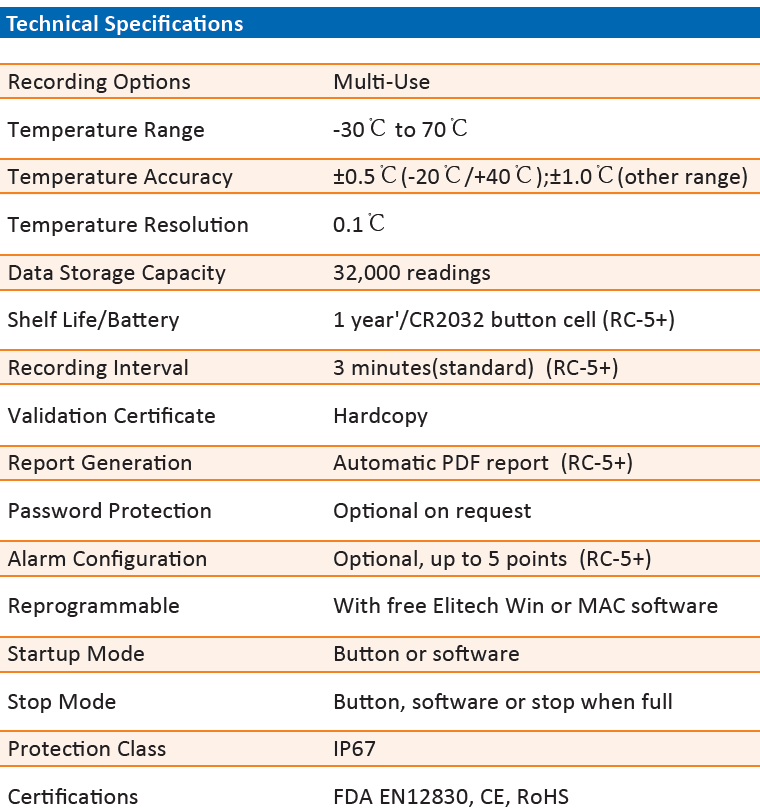 • Built-in USB port allows quick access to PCs and ElitechLog software