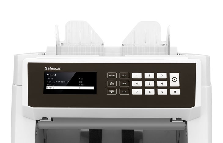 Let the 2885-S help you optimize your cash-counting workflow. Press the convenient “add” button and the 2885-S will automatically keep track of the total banknote count across individual runs. Press “batch” and enter the desired number of banknotes and the 2885-S will automatically pause each time it counts out that number. There’s no faster way to prepare your bank deposits and cash drawers.