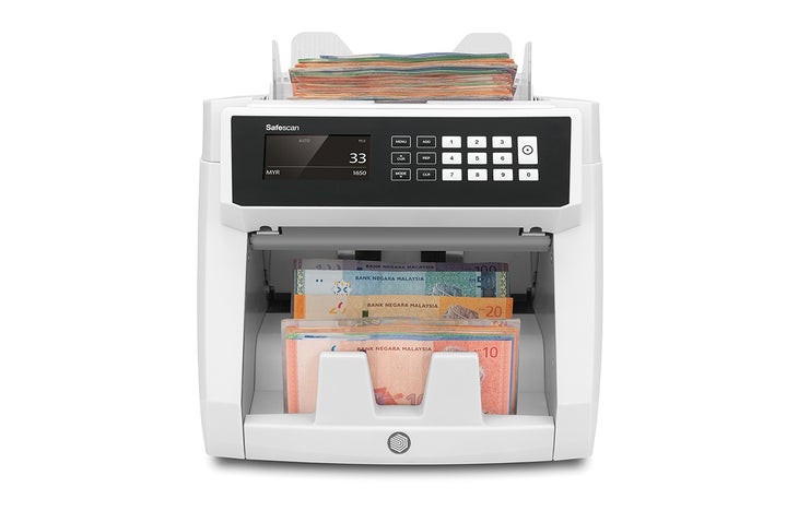 The Safescan 2885-S is your ultimate tool for easy and effective counting and validating of banknotes, offering professional-grade mixed-banknote counting and counterfeit detection. Featuring CIS technology, it will value-count up 10 currencies. Even the most advanced currencies, such as those printed on polymer, those that have transparent windows and those whose denominations have nearly identical dimensions. Designed for high-volume use, the 2885-S is ideal for businesses that need fast, error-free counting for multiple currencies and proven 100% accurate banknote authentication.