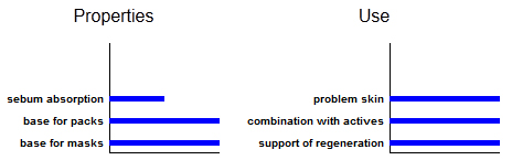Properties | Clay soaks with water and, when mixed with appropriate skin care products, it is able to embody their regenerating substances. When using the product as facial mask, the regenerating substances are emitted into the skin in appropriate doses and, in interaction, the clay assimilates substances of the skin due to its ionic exchange and adsorption effects. | |