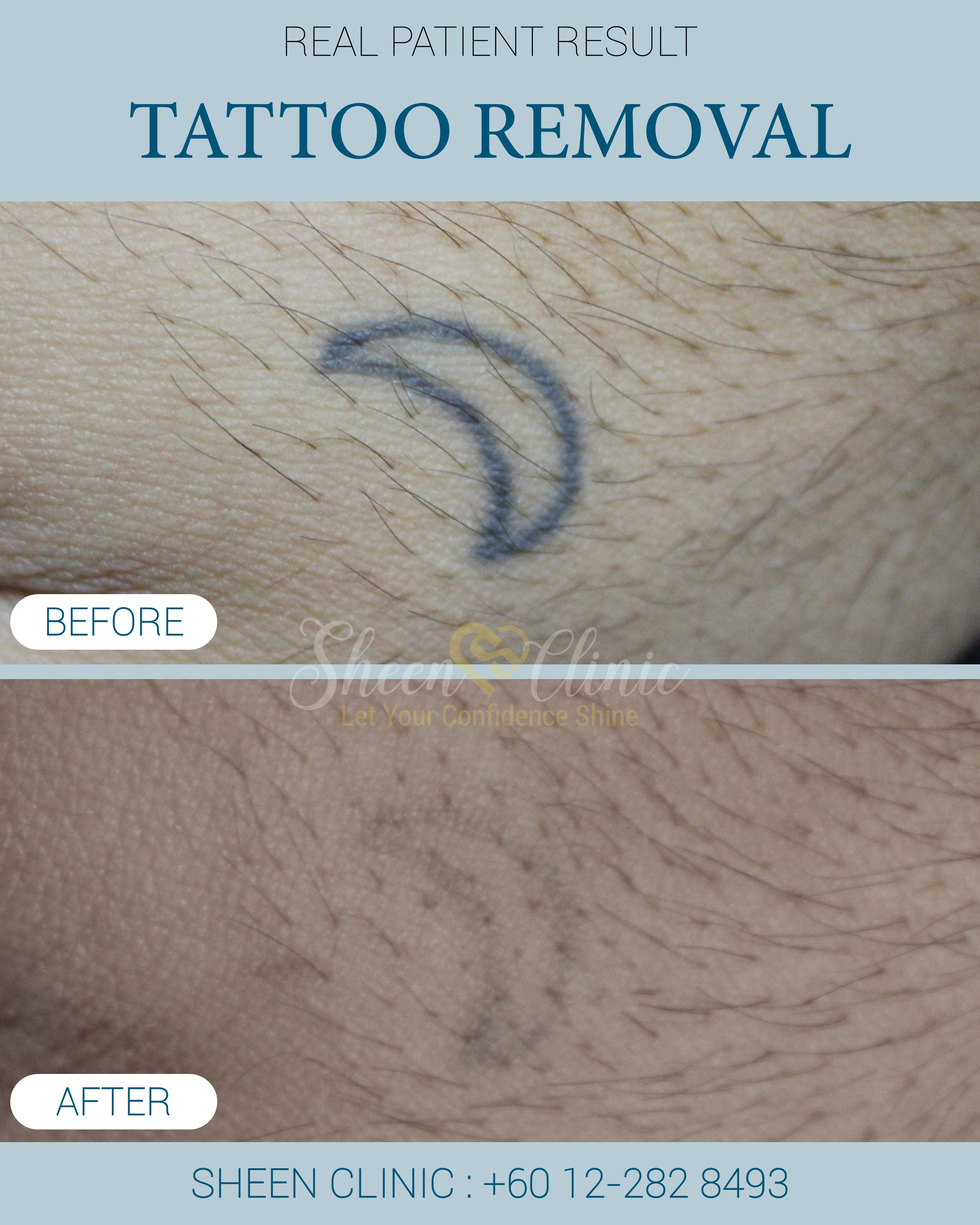 Real Patent's Before- after photo show Tattoo ink reduction after 5 sessions of PICO laser