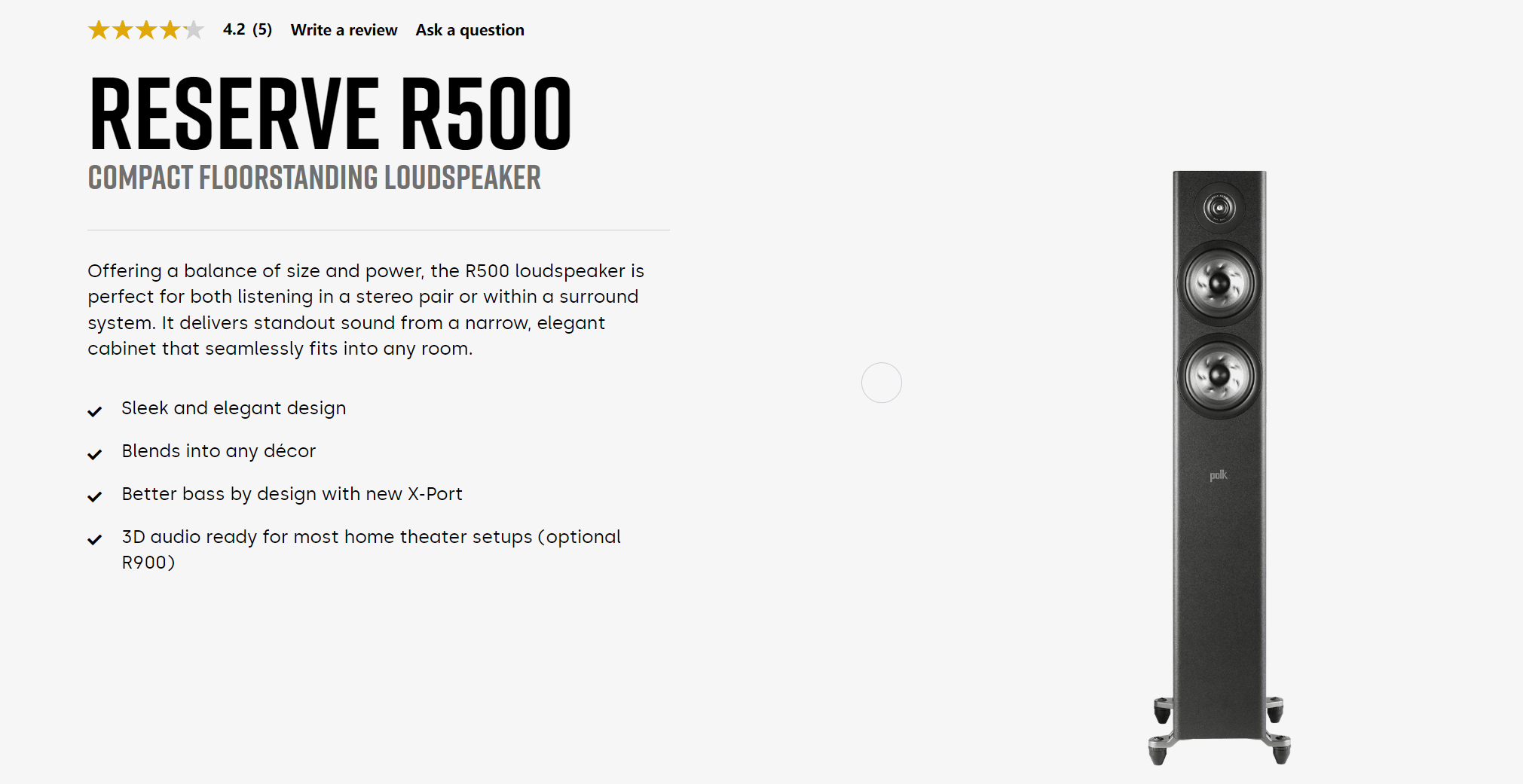 Polk Audio RESERVE R500 COMPACT FLOORSTANDING LOUDSPEAKER(PAIR)