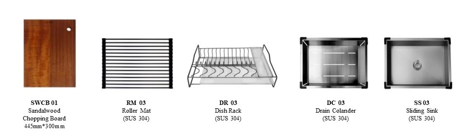 HUN HKS 337 Workstation Kitchen Sink (SUS 304) Overall Dimension: 1000mm*480mm Bowls Dimension: 970mm*410mm*250mm Material: SUS304 DDQ Thickness: 1.2mm Accessories Includes: