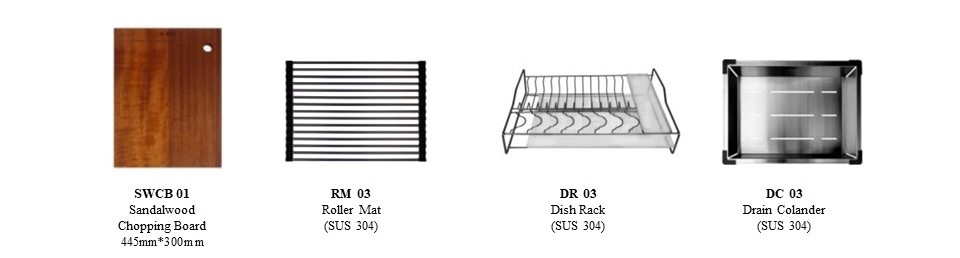 HUN HKS 335 Workstation Kitchen Sink (SUS 304) Overall Dimension: 680mm*480mm Bowls Dimension: 650mm*410mm*250mm Material: SUS304 DDQ Thickness: 1.2mm Accessories Includes: