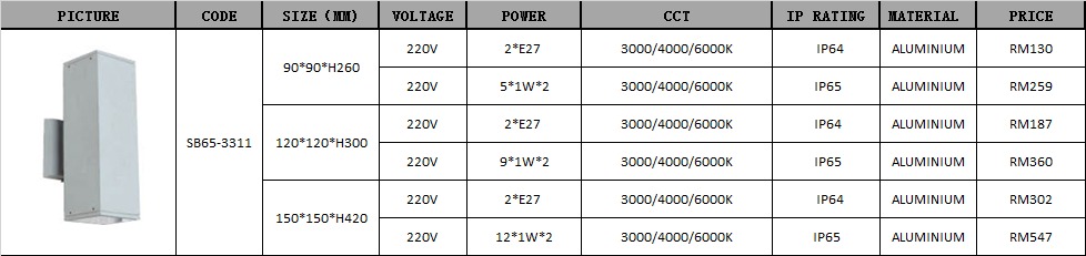 SIZE (MM): 90*90*H260 MM / 120*120*H300 MM / 150*150*H420 MM