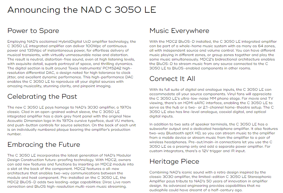 NAD C3050 Limited Edition Stereophonic Amplifier