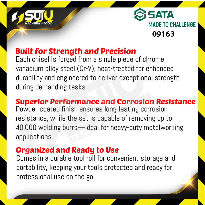 - Each chisel is forged from a single piece of chrome vanadium alloy steel (Cr-V),heat-treated for enghanced durability and engineered to deliver exceptional strength during demanding tasks.