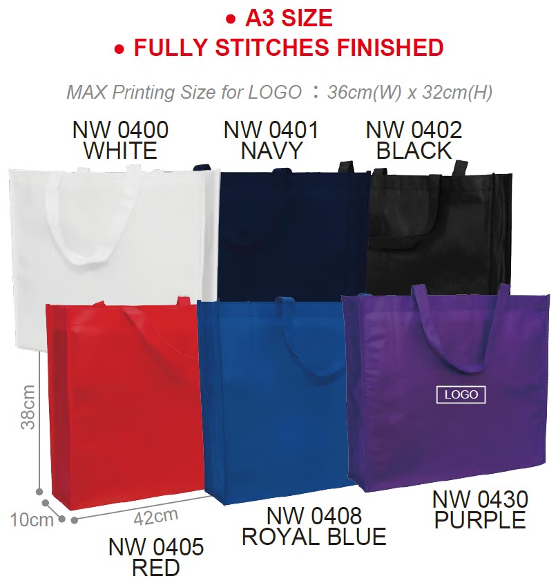 Material: Non-Woven (A3 Sized) (90gsm) — Offers lightweight durability, eco-friendly reusability, breathability, water resistance, and excellent strength for carrying items efficiently.