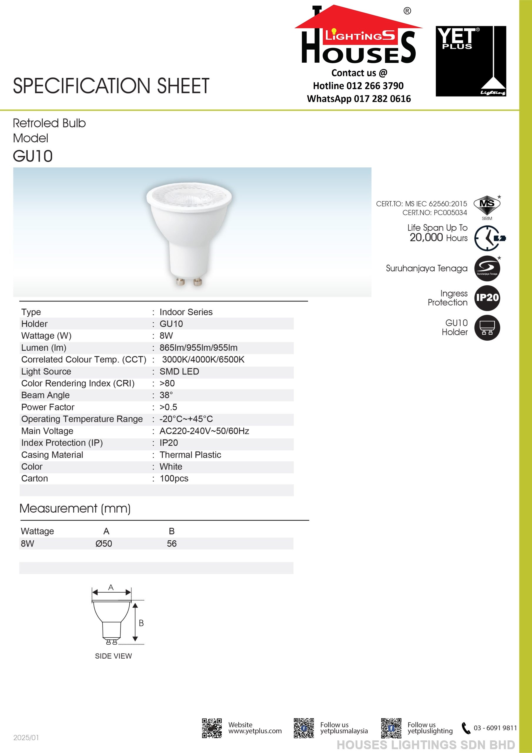 YET GU10 8W LED BULB