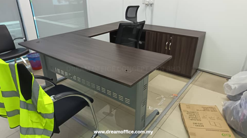 Enhance productivity and maximize workspace with our premium L-Shaped Executive Office Table, designed to offer both functionality and contemporary style. The spacious L-shaped layout provides an expansive work surface, ideal for multitasking, organizing documents, and accommodating office equipment, while promoting a more efficient and ergonomic workflow.