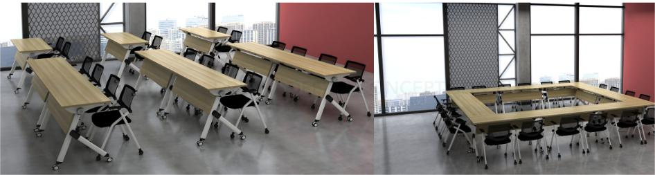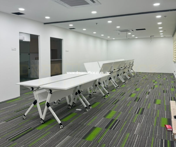 A versatile and durable foldable training table designed for modern learning, meeting, and collaborative environments. The table features a folding top mechanism for easy storage and space efficiency, along with smooth-rolling castors for effortless mobility and quick room reconfiguration.