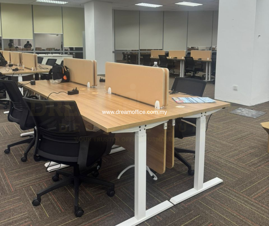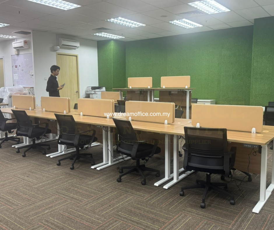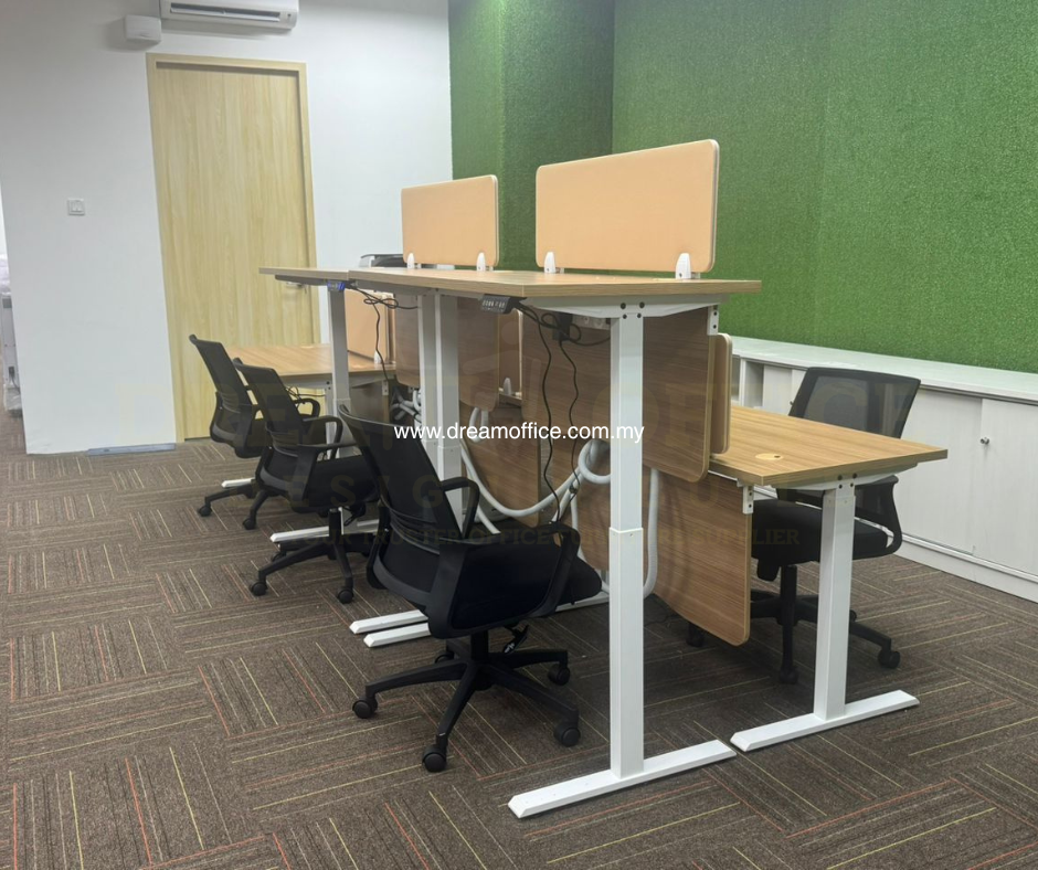 A premium motorized height-adjustable office desk designed to promote ergonomic comfort, productivity, and well-being in modern workspaces. The desk features a smooth electric lifting mechanism, allowing users to easily transition between sitting and standing positions at the touch of a button.