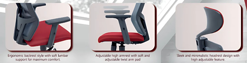 - Backrest : Ergonomic Backrest with Soft Lumbar Support For Maximum Comfort