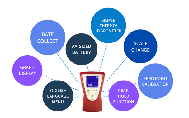 POLFA is equipped simple thermometer and hygrometer to support measurement. POLFA is affected from temperature and humidity. After measurement, use the measured value as reference.