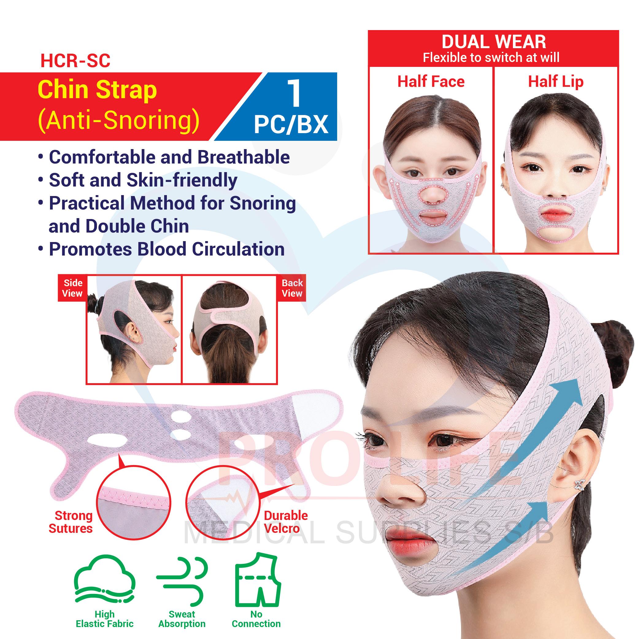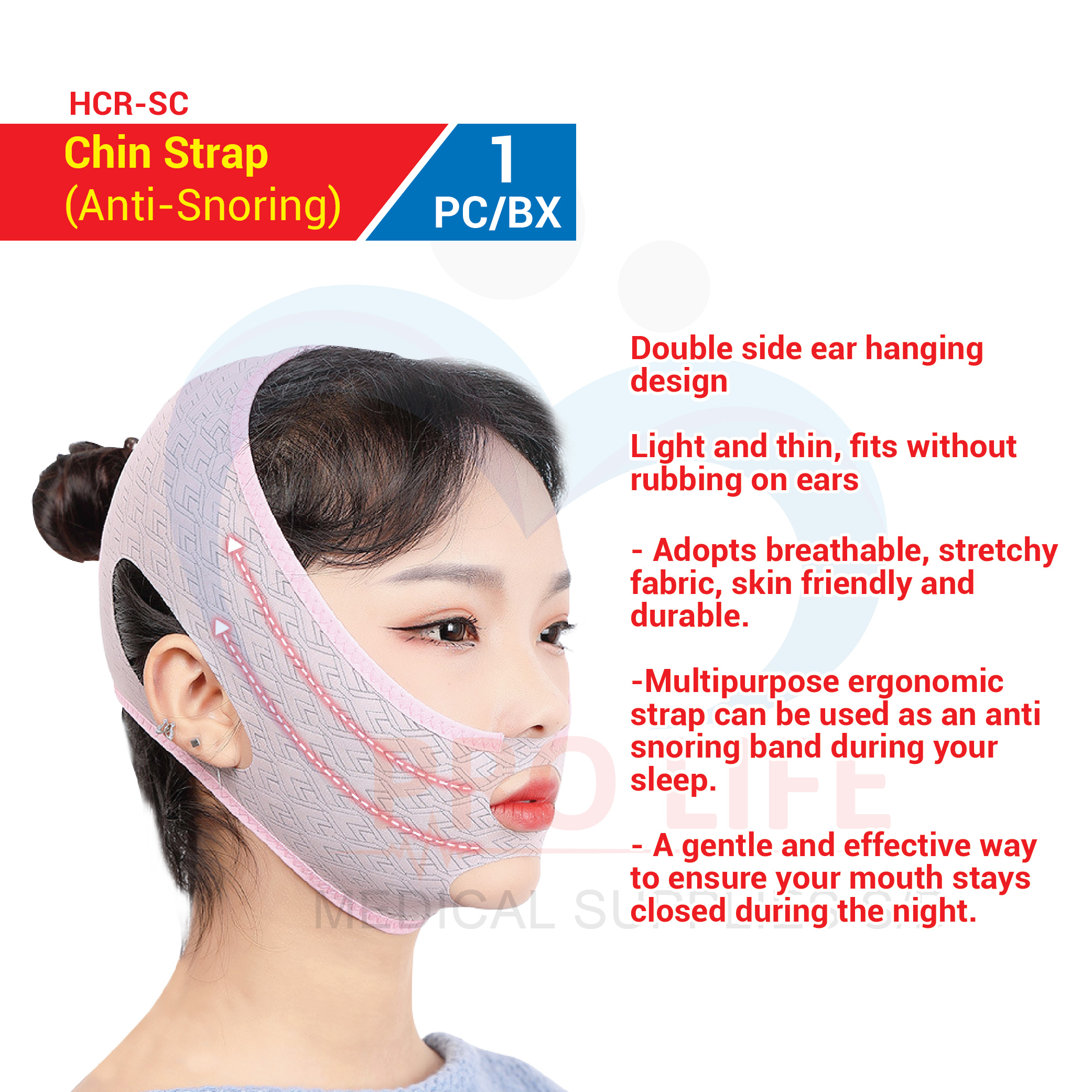 Chin Strap (Anti-Snoring) (HCR-SC) (1PC/BX)(Anti Snore Stop Snoring)/(V Facial 3D Sleeping Face-Lift Slimming Belt)