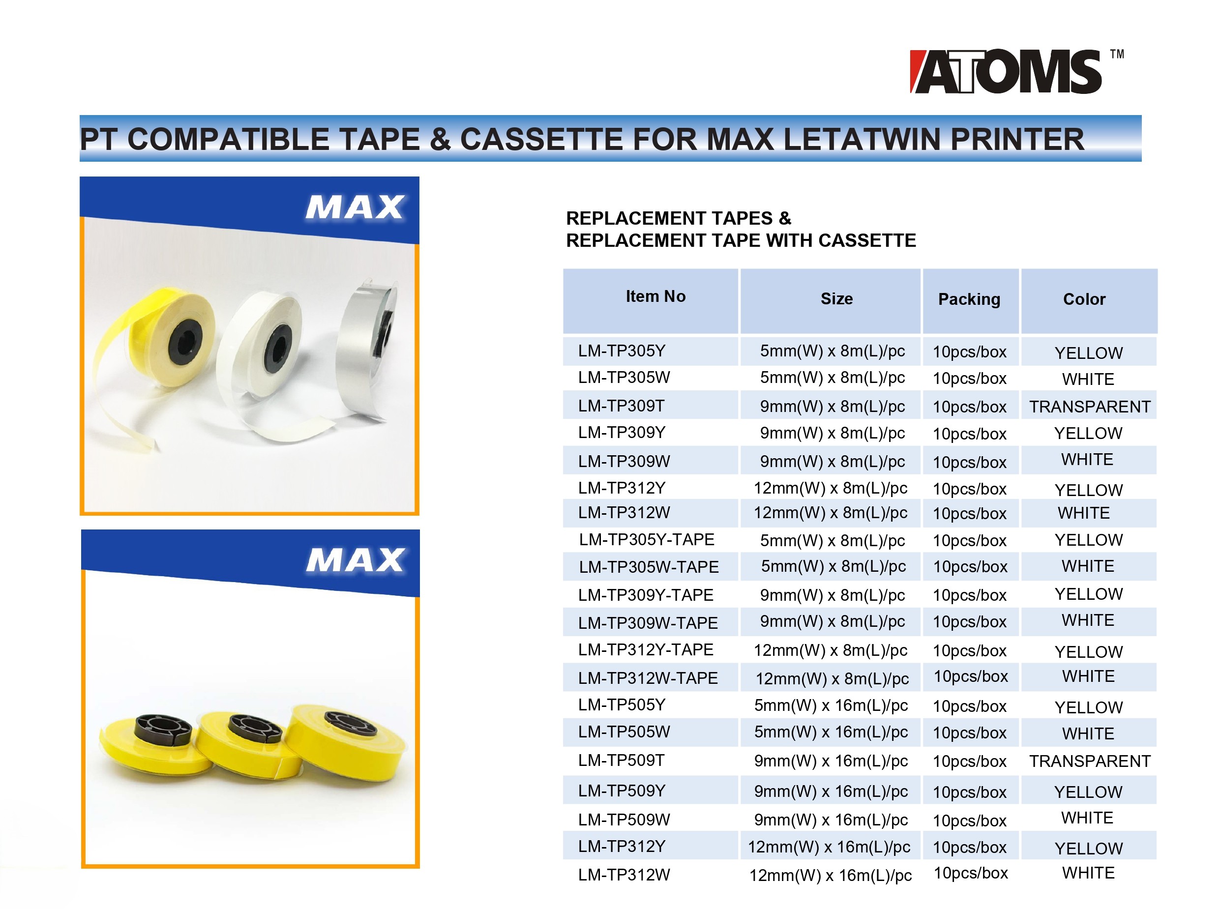 PT Compatible Tape & Cassette For Max Letatwin Printer (LM-TP)