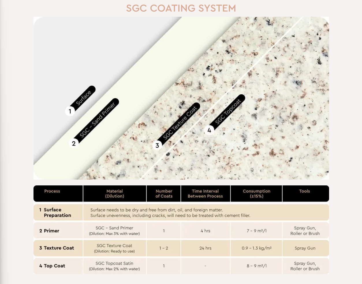 The meticulously formulated coating replicates the intricate natural beauty of granite.