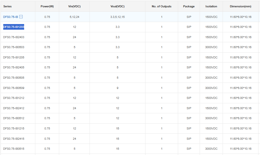 CLAF DFS0.75-IB1203 DC/DC FIXED INPUT (0.75-3W) CONVERTER