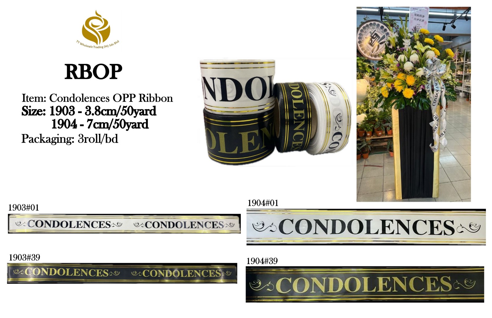Our Condolences OPP Ribbon is ideal for floral arrangements, wreaths, and sympathy gifts. Made from high-quality OPP material, it offers a smooth finish and a respectful touch for solemn occasions.