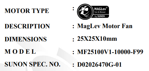 SUNON MF25100V1-10000-A99 25X25X10MM MAGLEV MOTOR FAN