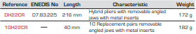 Angled and serrated jaws, reinforced with metal inserts. Cutting capacity: 16 mm² Copper / 25 mm² Alu. Do not cut steel.