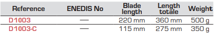 Straight handle. Plasticised blade mounting. Supplied with the frame Depth of cut: 3 mm Example of use: Cutting the steel shielding of low voltage underground cables
