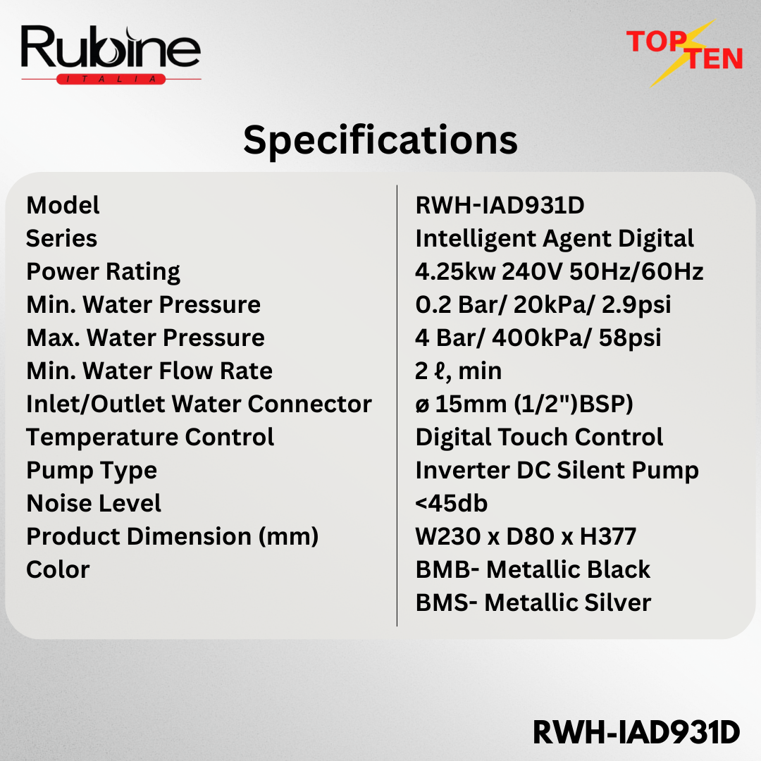 Rubine IAD Instant Water Heater RWH-IAD931D-BMB RWH-IAD931D-BMS