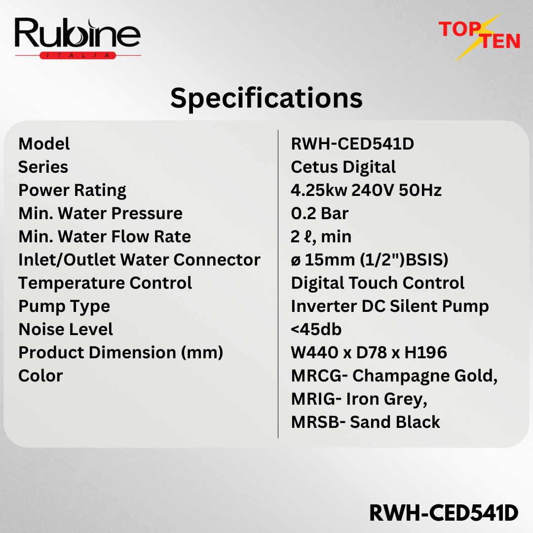 Rubine Instant Water Heater RWH-CED541D-MRIG RWH-CED541D-MRCG RWH-CED541D-MRSB