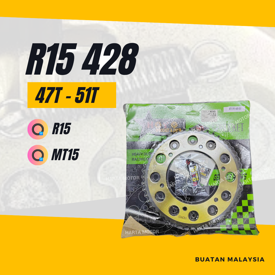 R15 428 REAR SPROCKET - R15 / MT15 47 48 50 51T SPOKET SPOCKET BELAKANG MT 15 R 15