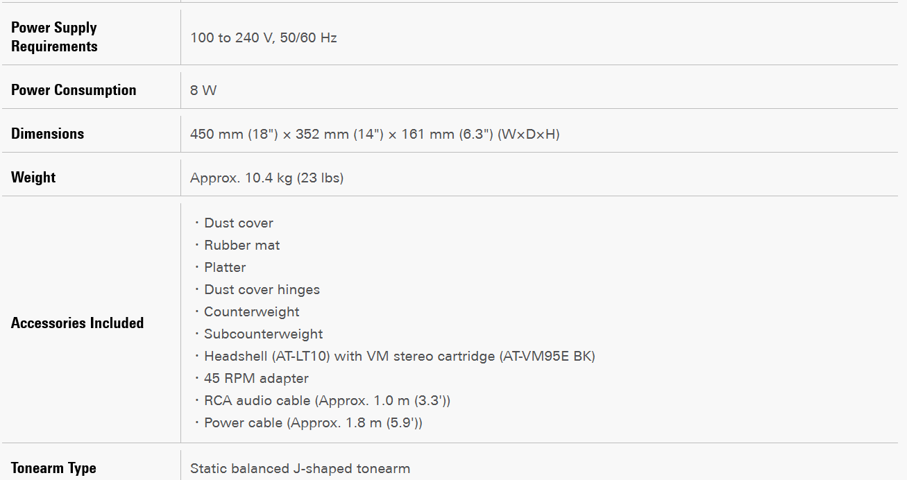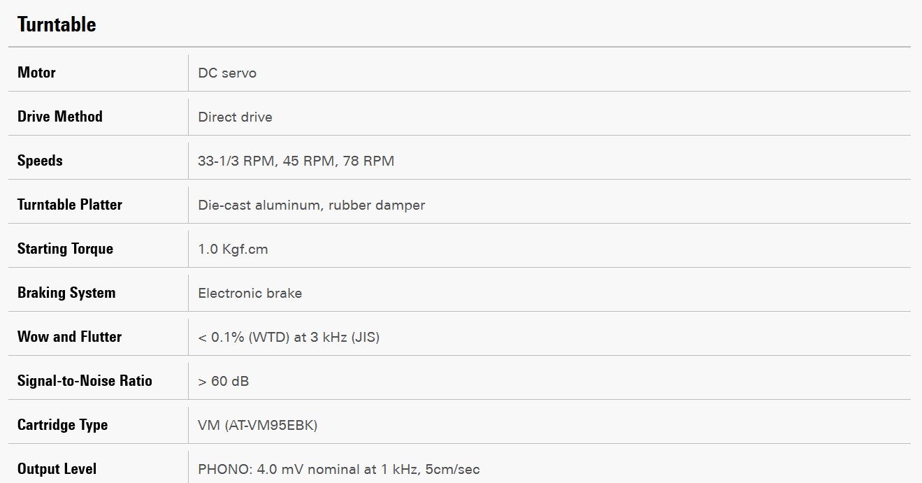 *A dedicated SP cartridge or the replacement AT-VMN95SP stylus is required to play 78 RPM records
