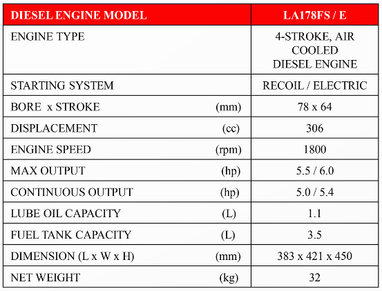 LAUNTOP LA178FSE Diesel Engine 4-Stroke Air Cooled Electric Start 306cc 1800rpm 6hp C003