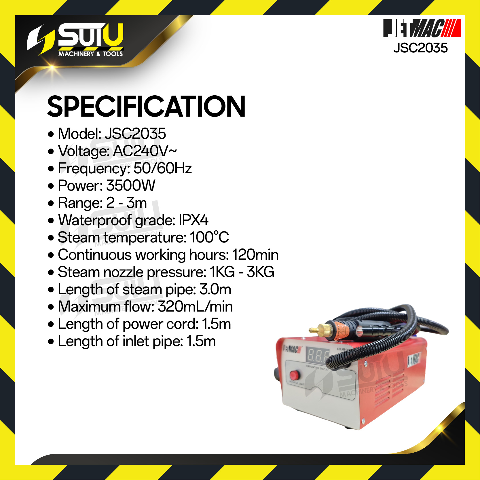 - Length of steam pipe : 3.0m