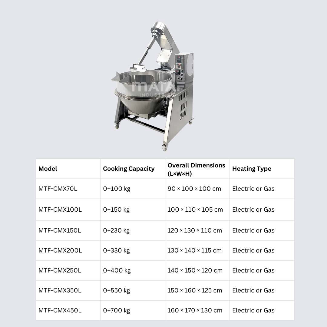 Model | Cooking Capacity | Overall Dimensions (L×W×H) | Heating Type |