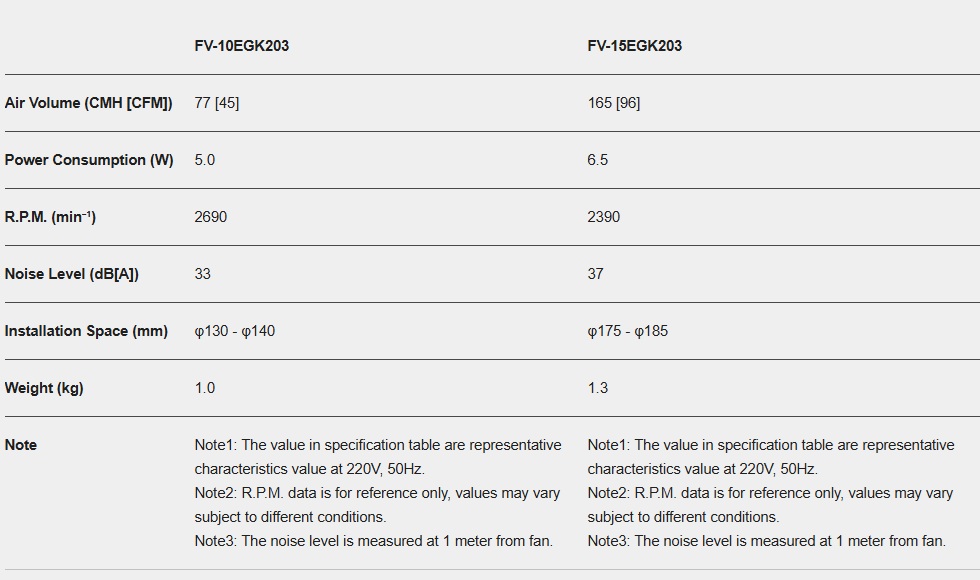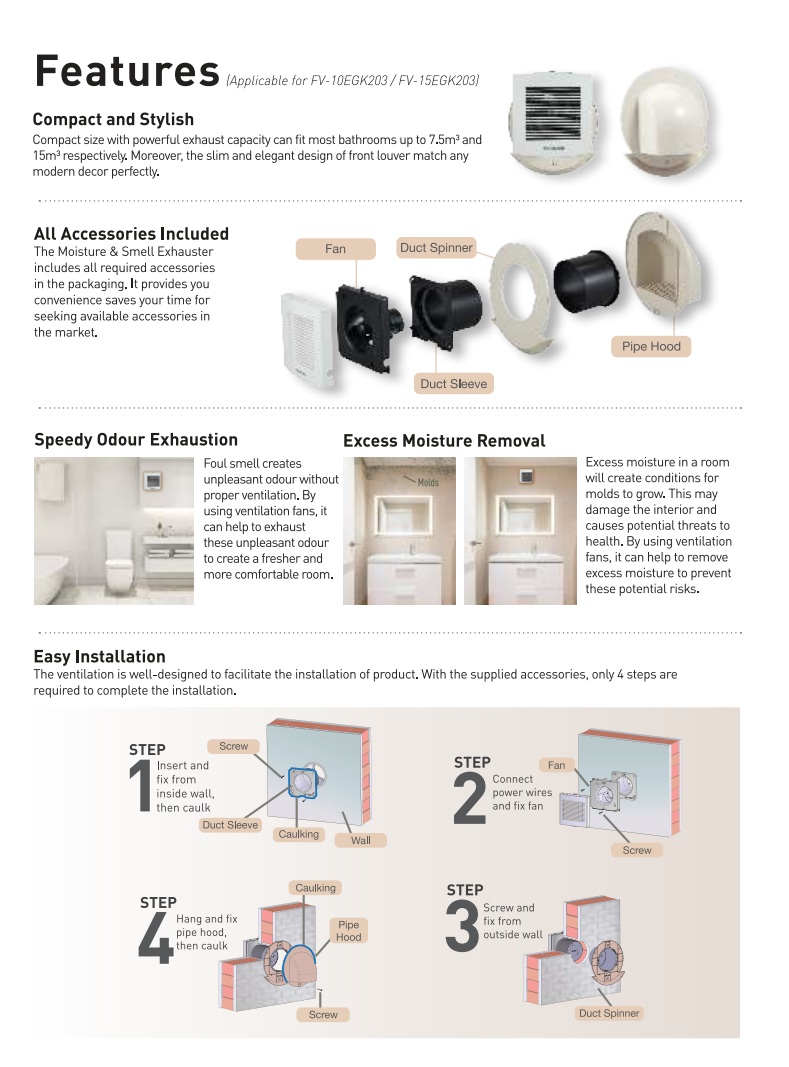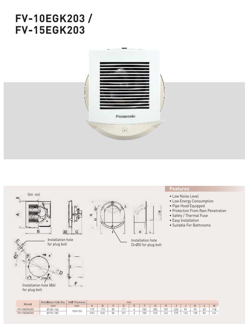 Panasonic FV-15EGK203 FV-10EGK203 Wall Mount VF Pipe Series