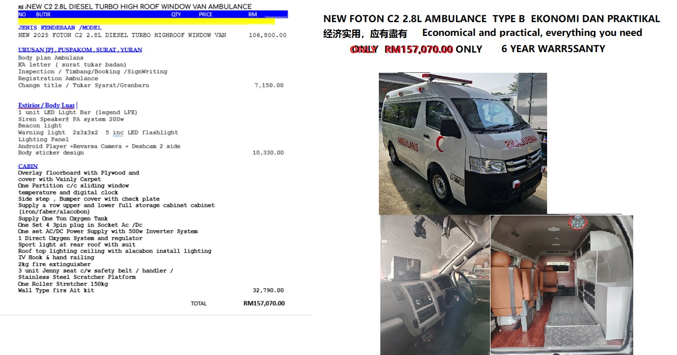 EKONOMICAL AND PRATICAL AMBULANCE FOTON VIEW C2 2.8L
