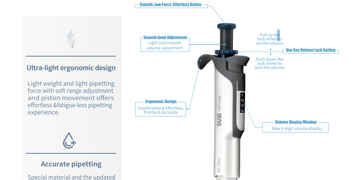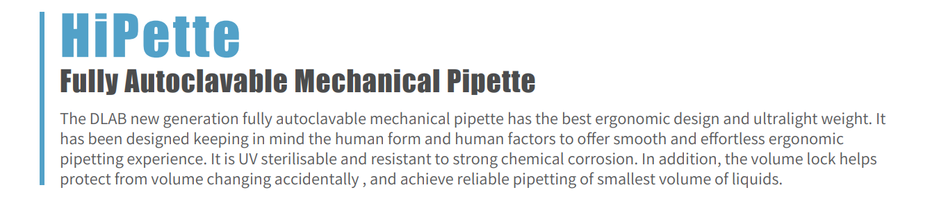 DLAB HiPette Colorful Fully Autoclavable Mechanical Pipette