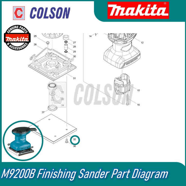 MAKITA MT Pad Complete for M9200G M9200B MT920 Finishing Sander