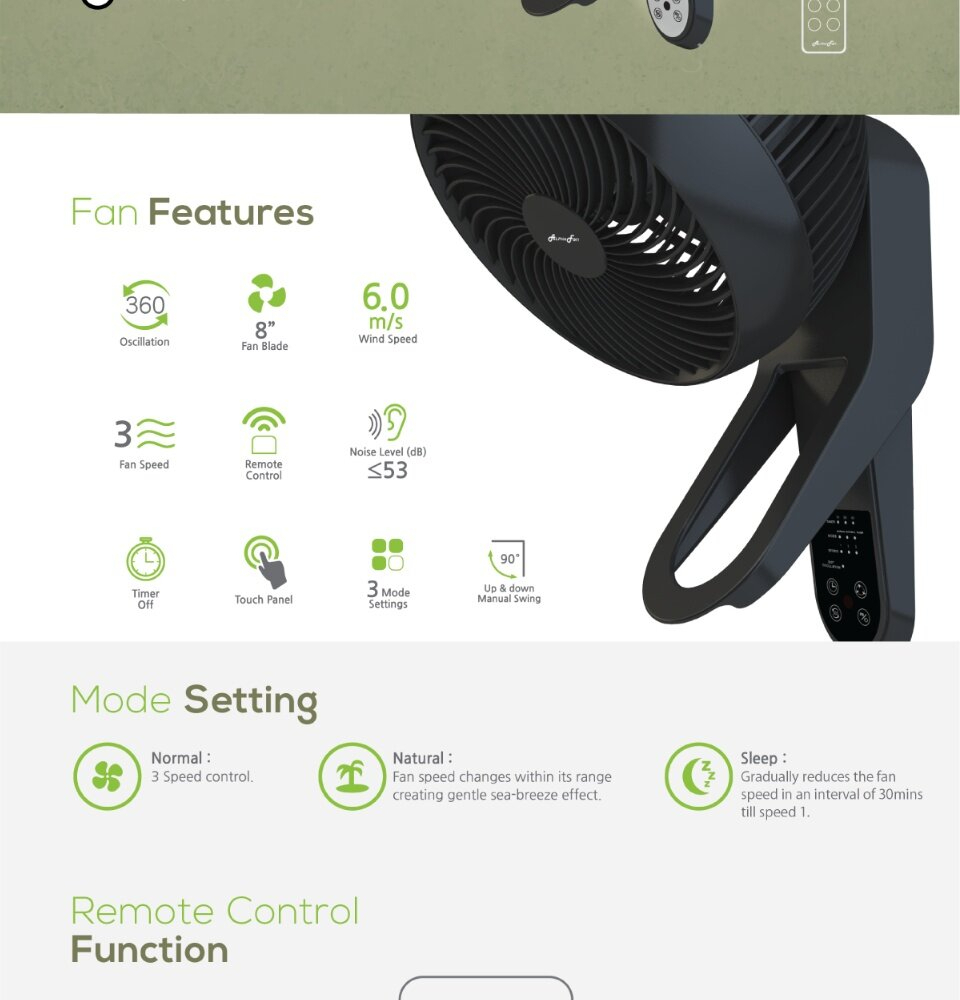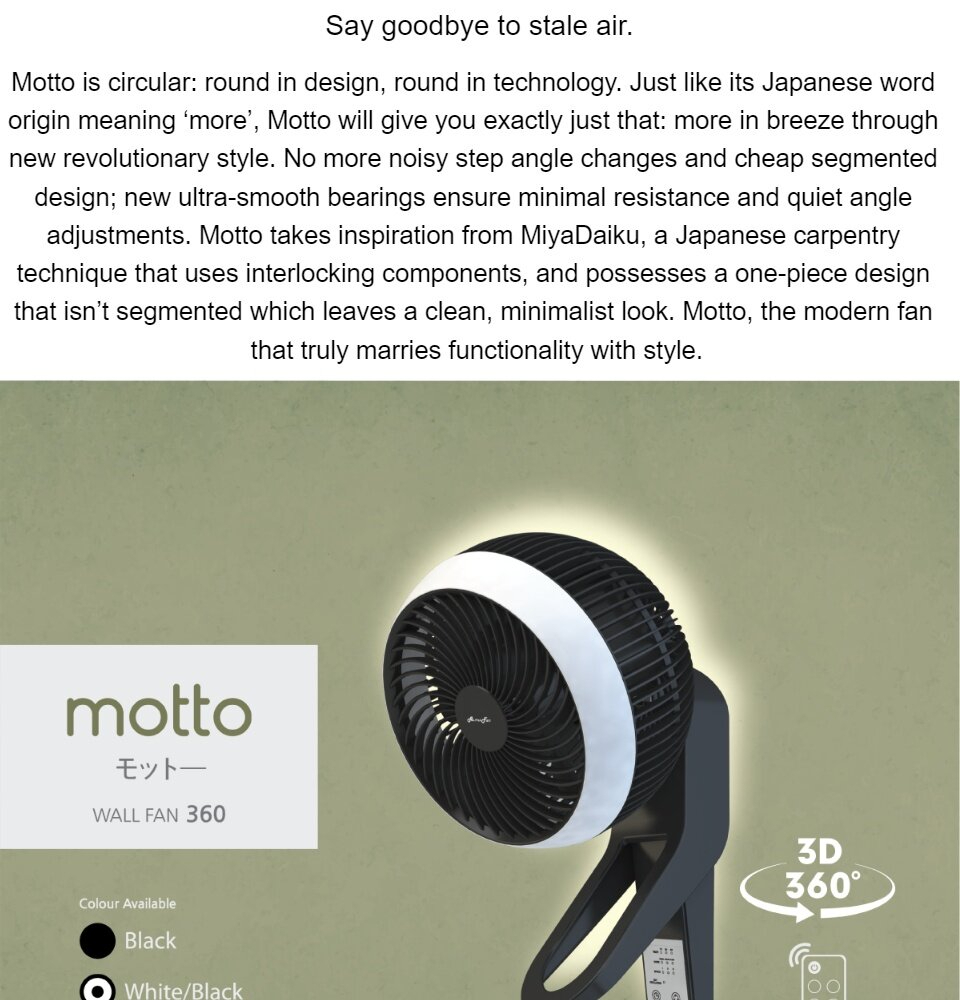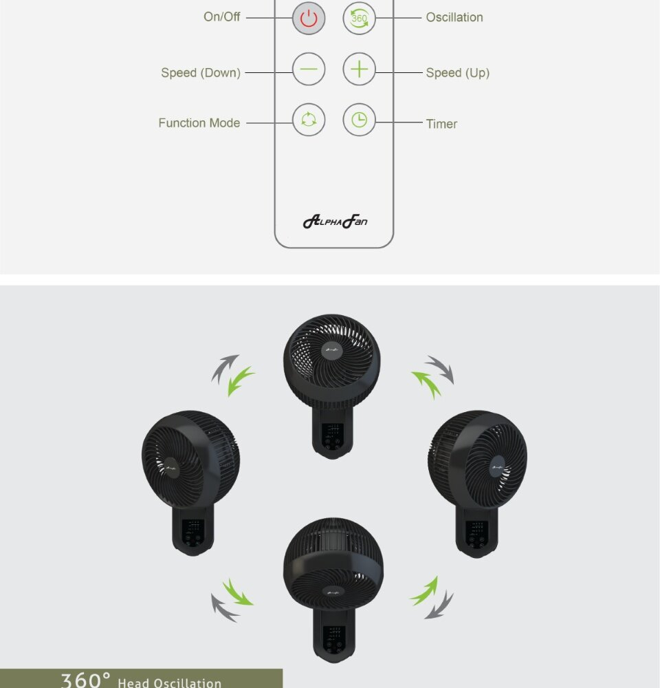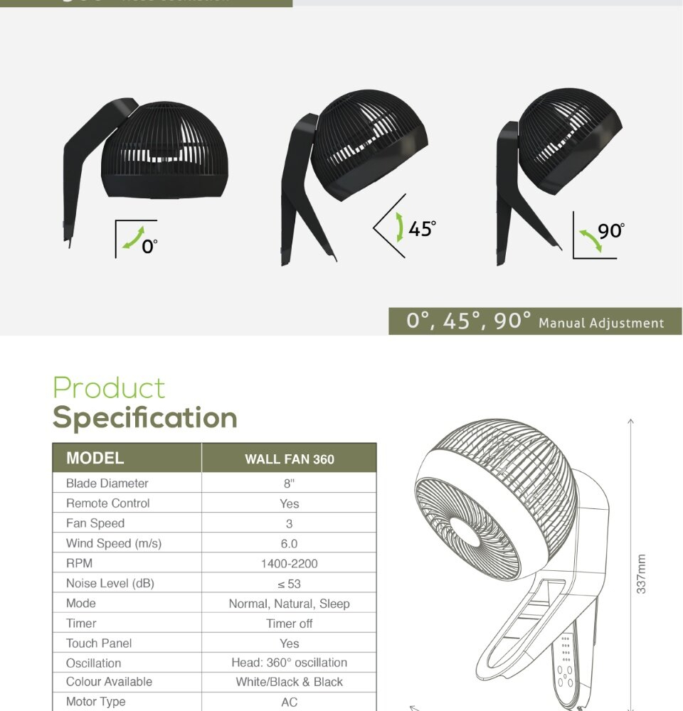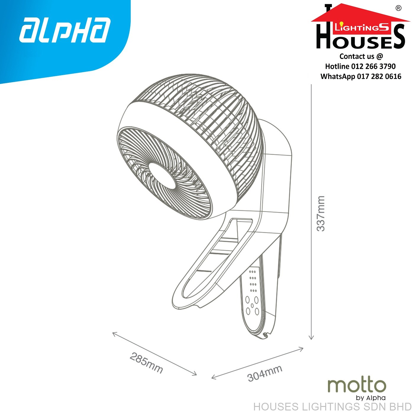 ALPHA Motto - WF360 Wall Fan 8 Inch with 3 Blades (3 Speed Remote) - Black