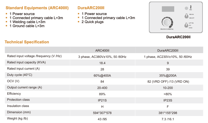 ARC II series is specially designed for MMA welding with Cellulose Electrodes (CEL). This series is suitable for working under extremely harsh industry field, special inner structure with optimum dust/ water protection to ensure ARC II robust design with uncondtional usage for optimum welding results.
