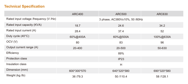 ARC series gives a highly stable DC arc and ensures perfect welding in all situations and positions. lt is new generation developed specially to meet harsh industry requirement and performs full power against voltage fluctuation and long distance welding (up to 100m).