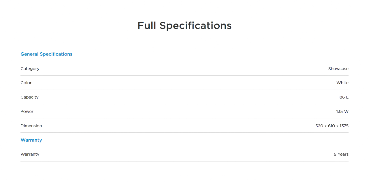 - Commercial Display Coolers with a capacity of 186 liters and a warranty of up to 5 years.