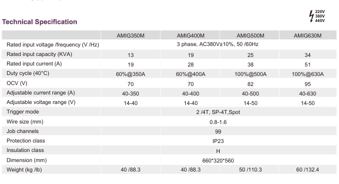 AMIG-350 /400 /500 /630M series is an intelligent welding machine. The welding machine adopts 32-bit ARM core, mature and reliable soft-switching IGBT inverter, and multiple protection designs to ensure excellent welding performance, reliable quality and long service life of the welding machine. It is the best choice for heavy industry, steel structure and mining industries.