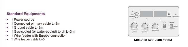 MIG-M series is specially designed analog MIG for steel welding. All important MIG preference, like burnback and creep start is already included in this power source. All MIG-M machines is multiprocess to perform all needs. MIG-MC series is compact design.