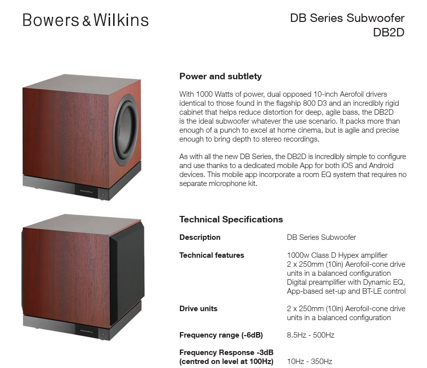 Bowers & Wilkins DB2D High Performance 10 Inch Subwoofer