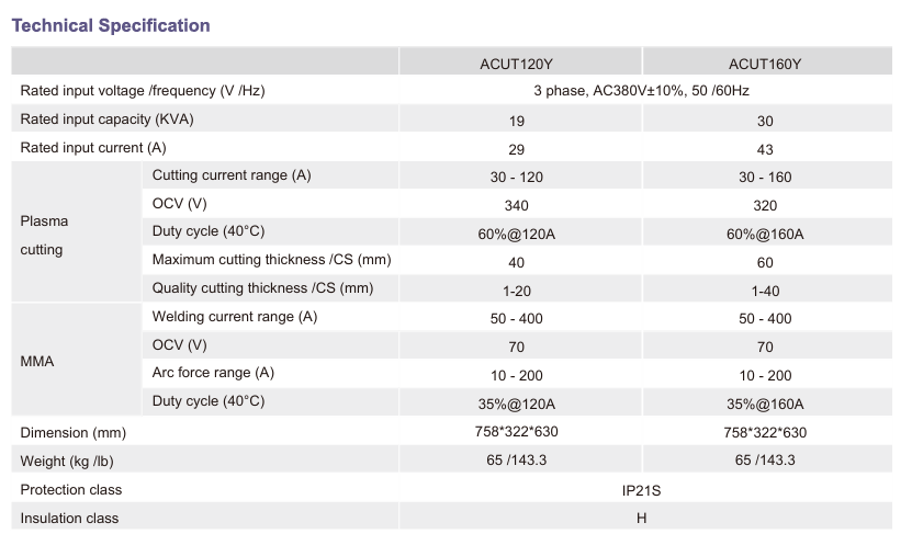 ACUT-120 /160Y cutting equipment is a metal cutting equipment with high efficiency, high quality and low cost. It integrates cut and weld functions to one machine, which can be applied to perform manual cutting and CNC cutting. It equips built-in air compressor, which makes it become the portable type edge tool in site installation and fabrication industries.