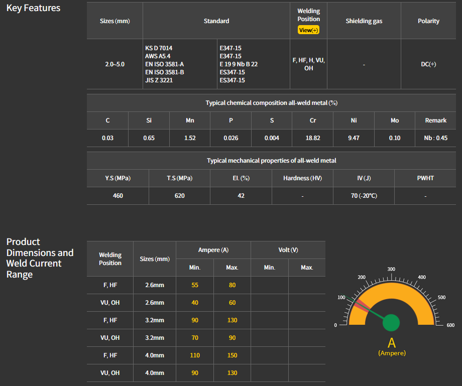 - EN: ISO 3581-A : E 19 9 Nb B 22